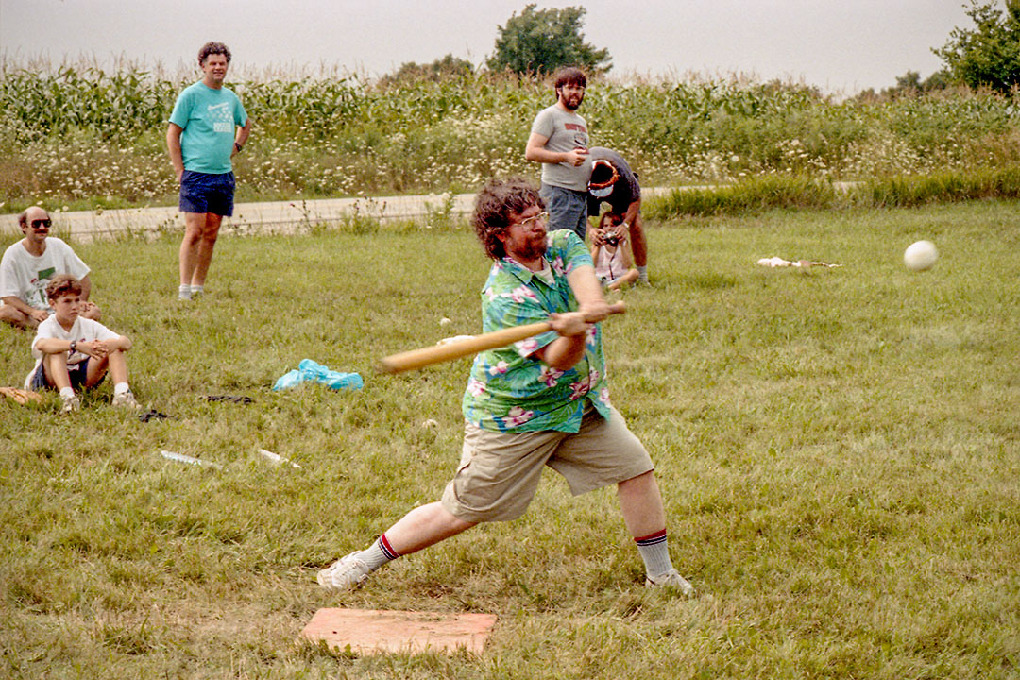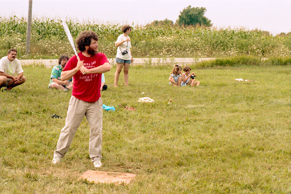 I think Roddy liked to see himself as a regular working guy, and he was also a scholar with a keen interest in politics, economics and philosophy. However, I believe his first love was baseball. As Dumont Press became a regular (in its own unique way) established workplace, it didn’t take long for thoughts to turn toward spring and the upcoming ball season. Roddy found an eager crew of players among the staff at the shop, and in June ’72, the newly-formed Dumont Ducks took to the field as part of the university intramural league. Roddy played second base, but he was also a coach, trainer, cheerleader (in his usual quiet way) and mentor to the rest of us. Win or lose, the Ducks were a huge success, providing a kind of cultural glue to add an extra dimension to our co-operatives lives together.