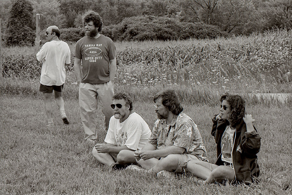 About 150 people, from Newfoundland to British Columbia, made the trek to the farm at Chicopee (just outside of Kitchener) in June 1976 to help celebrate Dumont Press and the community of activists, writers and publishers it fostered and supported throughout southern Ontario. This is part of a photographic portfolio created that day by Brian Cere.