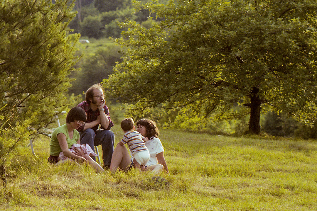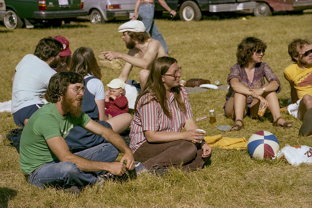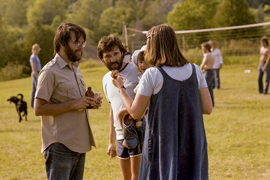 About 150 people, from Newfoundland to British Columbia, made the trek to the farm at Chicopee (just outside of Kitchener) in June 1976 to help celebrate Dumont Press and the community of activists, writers and publishers it fostered and supported throughout southern Ontario. This is part of a photographic portfolio created that day by Brian Cere.