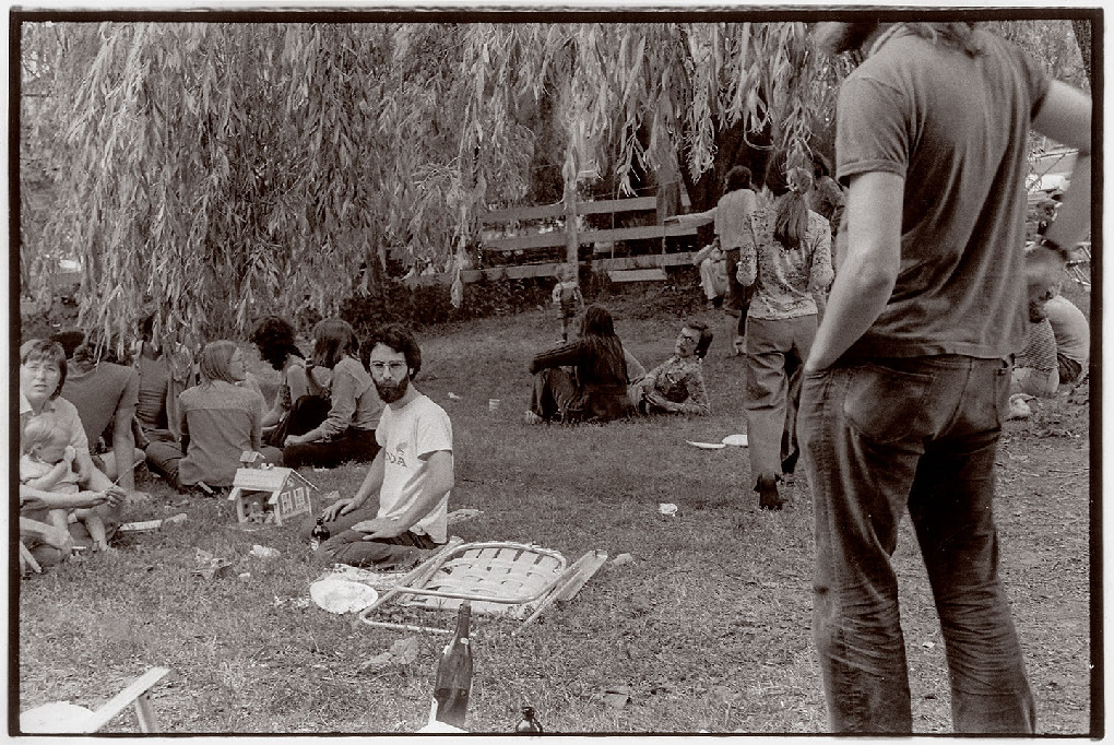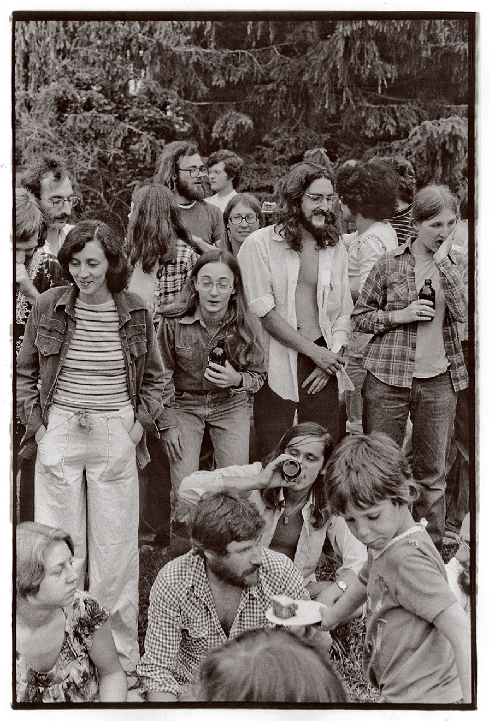 About 150 people, from Newfoundland to British Columbia, made the trek to the farm at Chicopee (just outside of Kitchener) in June 1976 to help celebrate Dumont Press and the community of activists, writers and publishers it fostered and supported throughout southern Ontario. This is part of a photographic portfolio created that day by Brian Cere.