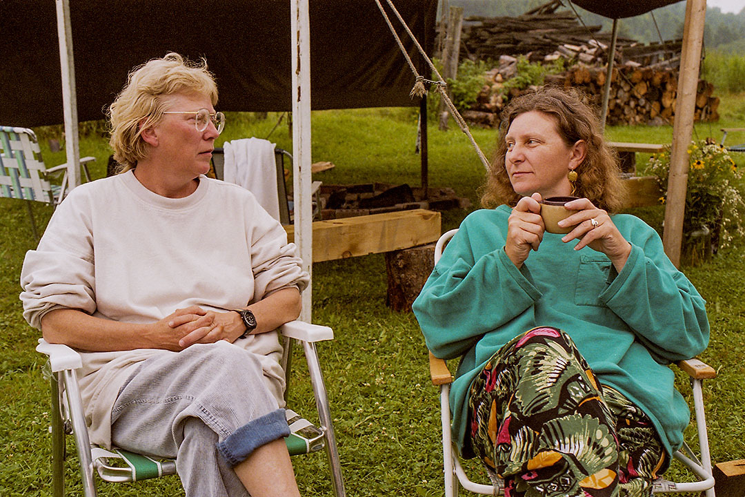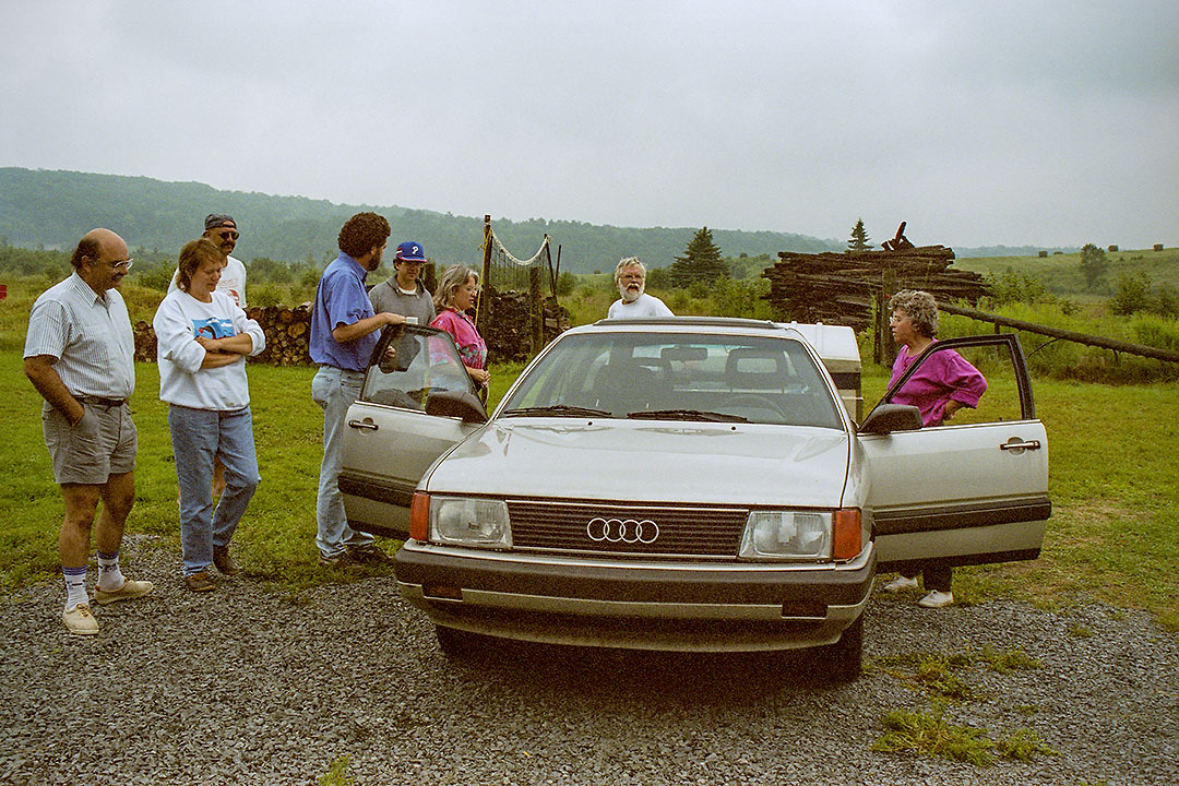 About 150 people, from Newfoundland to British Columbia, made the trek to the farm at Chicopee (just outside of Kitchener) in June 1976 to help celebrate Dumont Press and the community of activists, writers and publishers it fostered and supported throughout southern Ontario. This is part of a photographic portfolio created that day by Brian Cere.