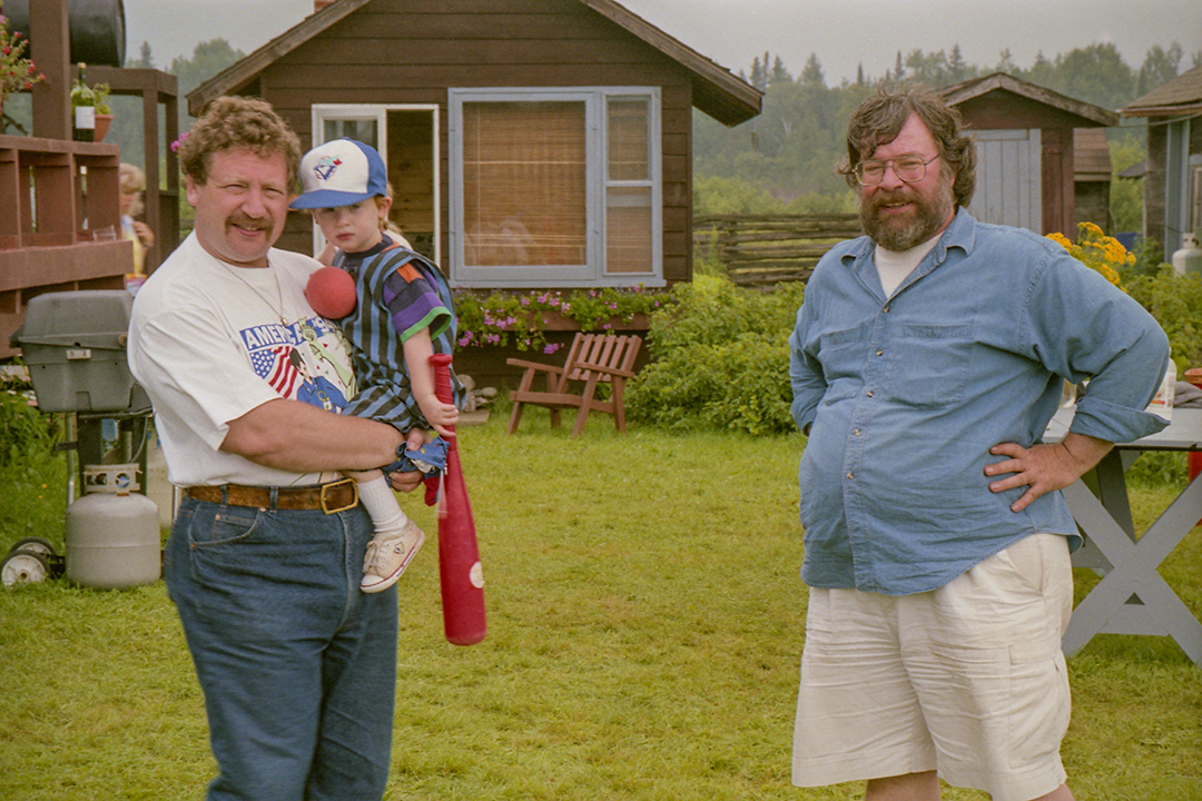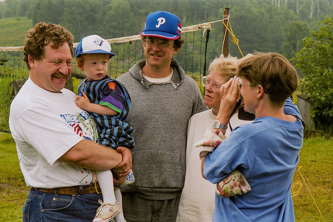 Two years after the first Dumont reunion in 1985 (a rousing success, as we all agreed), we decided to do it all again, back at Elaine and Michael's farm just north of Bruce Mines. It was centrally located, with lots of room for camping, great feasting and assorted shenanigans. Eddie even built a three-hole golf course! Good times all round.
